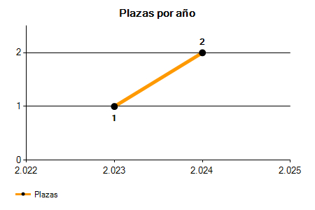 En los siguientes gráficos se puede ver la evolución del número de convocatorias y plazas convocadas para la profesión de Oficial de 1.ª de la Construcción en Cáceres de los últimos años pudiéndose observar una caída del 100,00% desde el año 2023 hasta el 2025 en número de convocatorias y una caída del 100,00% en número de plazas convocadas.