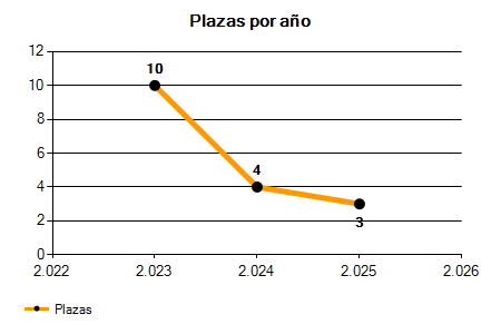 En los siguientes gráficos se puede ver la evolución del número de convocatorias y plazas convocadas para la profesión de Oficial de 1ª Oficios Varios en Valencia de los últimos años pudiéndose observar una caída del 25,00% desde el año 2023 hasta el 2025 en número de convocatorias y una caída del 70,00% en número de plazas convocadas.