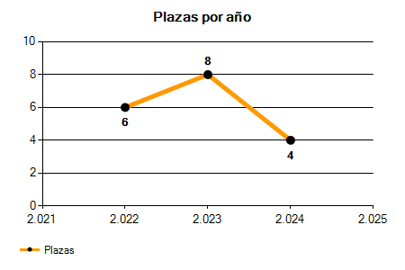 En los siguientes gráficos se puede ver la evolución del número de convocatorias y plazas convocadas para la profesión de Oficial de Explotación y Obras en Badajoz de los últimos años pudiéndose observar una caída del 100,00% desde el año 2022 hasta el 2025 en número de convocatorias y una caída del 100,00% en número de plazas convocadas.
