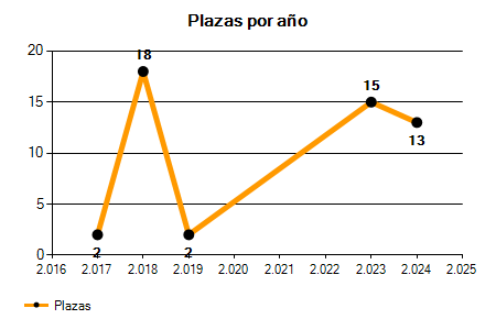 En los siguientes gráficos se puede ver la evolución del número de convocatorias y plazas convocadas para la profesión de Oficial de Explotación y Obras en Barcelona de los últimos años pudiéndose observar una caída del 100,00% desde el año 2017 hasta el 2025 en número de convocatorias y una caída del 100,00% en número de plazas convocadas.