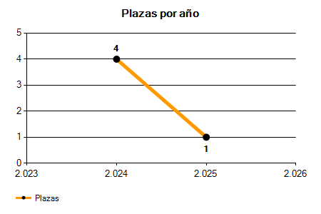 En los siguientes gráficos se puede ver la evolución del número de convocatorias y plazas convocadas para la profesión de Oficial de Explotación y Obras en Cáceres de los últimos años pudiéndose observar una caída del 75,00% desde el año 2024 hasta el 2025 en número de convocatorias y una caída del 75,00% en número de plazas convocadas.