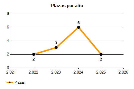 En los siguientes gráficos se puede ver la evolución del número de convocatorias y plazas convocadas para la profesión de Oficial de Mantenimiento en Balears de los últimos años pudiéndose observar un crecimiento del 100,00% desde el año 2022 hasta el 2025 en número de convocatorias y un crecimiento y una caída del 0,00% en número de plazas convocadas.