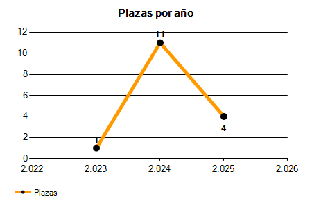 En los siguientes gráficos se puede ver la evolución del número de convocatorias y plazas convocadas para la profesión de Oficial de Mantenimiento de Instalaciones Deportivas en Madrid de los últimos años pudiéndose observar un crecimiento y una caída del 0,00% desde el año 2023 hasta el 2025 en número de convocatorias y un crecimiento del 300,00% en número de plazas convocadas.