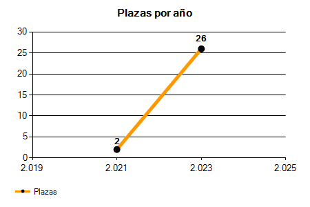 En los siguientes gráficos se puede ver la evolución del número de convocatorias y plazas convocadas para la profesión de Oficial de Mantenimiento en Tarragona de los últimos años pudiéndose observar una caída del 100,00% desde el año 2021 hasta el 2025 en número de convocatorias y una caída del 100,00% en número de plazas convocadas.