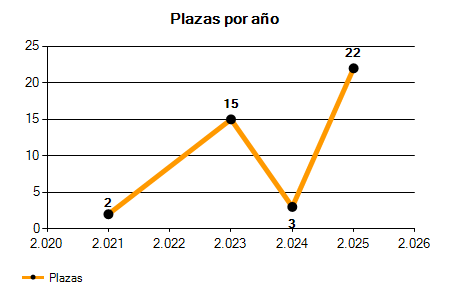 En los siguientes gráficos se puede ver la evolución del número de convocatorias y plazas convocadas para la profesión de Oficial de Mantenimiento en Valencia de los últimos años pudiéndose observar un crecimiento del 400,00% desde el año 2021 hasta el 2025 en número de convocatorias y un crecimiento del 1.000,00% en número de plazas convocadas.
