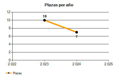 En los siguientes gráficos se puede ver la evolución del número de convocatorias y plazas convocadas para la profesión de Operario de servicios múltiples en Asturias de los últimos años pudiéndose observar una caída del 100,00% desde el año 2023 hasta el 2025 en número de convocatorias y una caída del 100,00% en número de plazas convocadas.