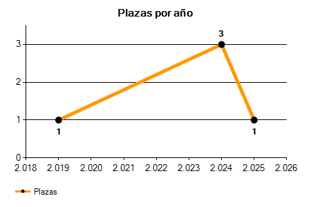 En los siguientes gráficos se puede ver la evolución del número de convocatorias y plazas convocadas para la profesión de Pedagogo en Murcia de los últimos años pudiéndose observar una caída del 100,00% desde el año 2019 hasta el 2026 en número de convocatorias y una caída del 100,00% en número de plazas convocadas.