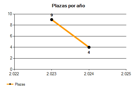 En los siguientes gráficos se puede ver la evolución del número de convocatorias y plazas convocadas para la profesión de Peón de Jardines en Alicante de los últimos años pudiéndose observar una caída del 100,00% desde el año 2023 hasta el 2025 en número de convocatorias y una caída del 100,00% en número de plazas convocadas.