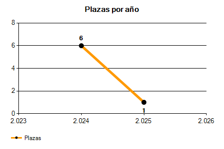 En los siguientes gráficos se puede ver la evolución del número de convocatorias y plazas convocadas para la profesión de Peón de Jardines en León de los últimos años pudiéndose observar una caída del 50,00% desde el año 2024 hasta el 2025 en número de convocatorias y una caída del 83,33% en número de plazas convocadas.