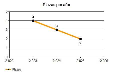 En los siguientes gráficos se puede ver la evolución del número de convocatorias y plazas convocadas para la profesión de Peón de Limpieza Viaria y Desbroce Forestal en Barcelona de los últimos años pudiéndose observar una caída del 66,67% desde el año 2023 hasta el 2025 en número de convocatorias y una caída del 50,00% en número de plazas convocadas.