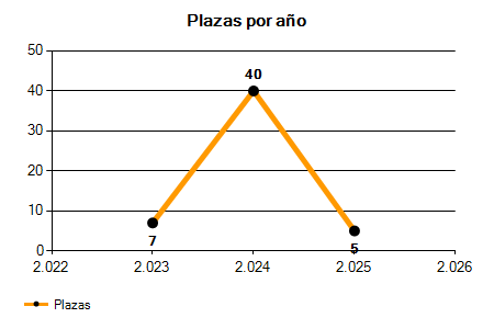 En los siguientes gráficos se puede ver la evolución del número de convocatorias y plazas convocadas para la profesión de Peón de Limpieza Viaria y Desbroce Forestal en Valencia de los últimos años pudiéndose observar una caída del 60,00% desde el año 2023 hasta el 2025 en número de convocatorias y una caída del 28,57% en número de plazas convocadas.