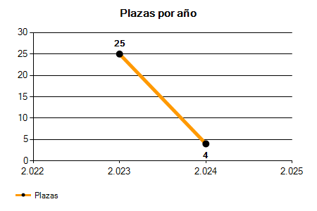 En los siguientes gráficos se puede ver la evolución del número de convocatorias y plazas convocadas para la profesión de Peón de Recogida de Residuos Sólidos Urbanos en Cádiz de los últimos años pudiéndose observar una caída del 100,00% desde el año 2023 hasta el 2025 en número de convocatorias y una caída del 100,00% en número de plazas convocadas.