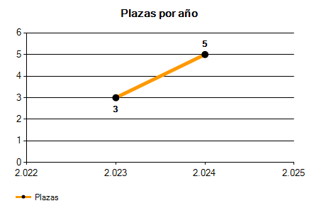 En los siguientes gráficos se puede ver la evolución del número de convocatorias y plazas convocadas para la profesión de Peón de Recogida de Residuos Sólidos Urbanos en Madrid de los últimos años pudiéndose observar una caída del 100,00% desde el año 2023 hasta el 2025 en número de convocatorias y una caída del 100,00% en número de plazas convocadas.