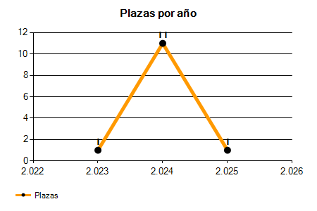 En los siguientes gráficos se puede ver la evolución del número de convocatorias y plazas convocadas para la profesión de Peón Mantenimiento en Madrid de los últimos años pudiéndose observar un crecimiento y una caída del 0,00% desde el año 2023 hasta el 2025 en número de convocatorias y un crecimiento y una caída del 0,00% en número de plazas convocadas.