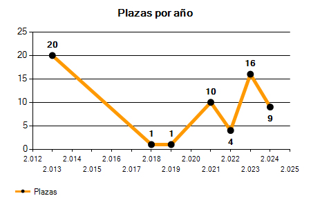 En los siguientes gráficos se puede ver la evolución del número de convocatorias y plazas convocadas para la profesión de Personal de limpieza en Córdoba de los últimos años pudiéndose observar una caída del 100,00% desde el año 2013 hasta el 2025 en número de convocatorias y una caída del 100,00% en número de plazas convocadas.