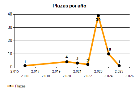 En los siguientes gráficos se puede ver la evolución del número de convocatorias y plazas convocadas para la profesión de Personal de limpieza en Jaén de los últimos años pudiéndose observar un crecimiento y una caída del 0,00% desde el año 2016 hasta el 2025 en número de convocatorias y un crecimiento y una caída del 0,00% en número de plazas convocadas.