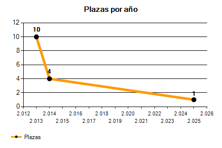 En los siguientes gráficos se puede ver la evolución del número de convocatorias y plazas convocadas para la profesión de Personal de oficios en Navarra de los últimos años pudiéndose observar una caída del 100,00% desde el año 2013 hasta el 2026 en número de convocatorias y una caída del 100,00% en número de plazas convocadas.