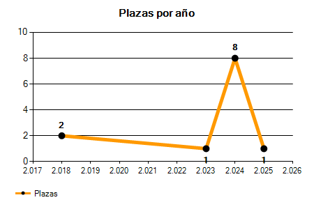 En los siguientes gráficos se puede ver la evolución del número de convocatorias y plazas convocadas para la profesión de Personal laboral en Sevilla de los últimos años pudiéndose observar un crecimiento y una caída del 0,00% desde el año 2018 hasta el 2025 en número de convocatorias y una caída del 50,00% en número de plazas convocadas.