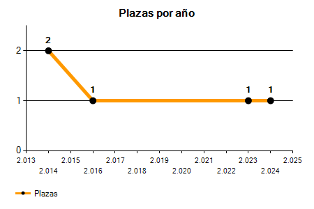 En los siguientes gráficos se puede ver la evolución del número de convocatorias y plazas convocadas para la profesión de Pintor en Albacete de los últimos años pudiéndose observar una caída del 100,00% desde el año 2014 hasta el 2025 en número de convocatorias y una caída del 100,00% en número de plazas convocadas.