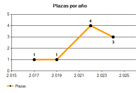En los siguientes gráficos se puede ver la evolución del número de convocatorias y plazas convocadas para la profesión de Pintor en Alicante de los últimos años pudiéndose observar una caída del 100,00% desde el año 2017 hasta el 2025 en número de convocatorias y una caída del 100,00% en número de plazas convocadas.