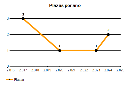 En los siguientes gráficos se puede ver la evolución del número de convocatorias y plazas convocadas para la profesión de Pintor en Cantabria de los últimos años pudiéndose observar una caída del 100,00% desde el año 2017 hasta el 2025 en número de convocatorias y una caída del 100,00% en número de plazas convocadas.