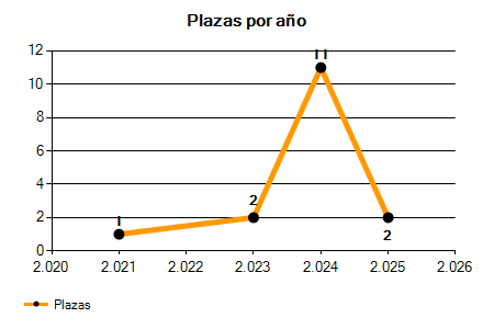 En los siguientes gráficos se puede ver la evolución del número de convocatorias y plazas convocadas para la profesión de Pintor en Valencia de los últimos años pudiéndose observar un crecimiento y una caída del 0,00% desde el año 2021 hasta el 2025 en número de convocatorias y un crecimiento del 100,00% en número de plazas convocadas.
