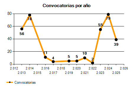 | 79 Convocatorias | 39 Convocatorias | -50,63% |