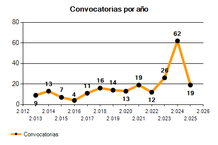 62 Convocatorias | 19 Convocatorias | -69,35% |