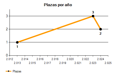 En los siguientes gráficos se puede ver la evolución del número de convocatorias y plazas convocadas para la profesión de Profesor en Albacete de los últimos años pudiéndose observar una caída del 100,00% desde el año 2013 hasta el 2025 en número de convocatorias y una caída del 100,00% en número de plazas convocadas.
