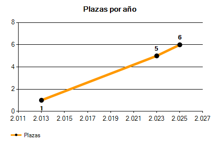 En los siguientes gráficos se puede ver la evolución del número de convocatorias y plazas convocadas para la profesión de Profesor en Alicante de los últimos años pudiéndose observar un crecimiento del 400,00% desde el año 2013 hasta el 2025 en número de convocatorias y un crecimiento del 500,00% en número de plazas convocadas.
