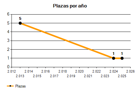 En los siguientes gráficos se puede ver la evolución del número de convocatorias y plazas convocadas para la profesión de Profesor en Cantabria de los últimos años pudiéndose observar un crecimiento y una caída del 0,00% desde el año 2013 hasta el 2025 en número de convocatorias y una caída del 80,00% en número de plazas convocadas.