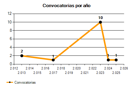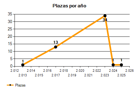 En los siguientes gráficos se puede ver la evolución del número de convocatorias y plazas convocadas para la profesión de Profesor de E.Música - Conservatorio en Santa Cruz de Tenerife de los últimos años pudiéndose observar una caída del 50,00% desde el año 2013 hasta el 2025 en número de convocatorias y un crecimiento y una caída del 0,00% en número de plazas convocadas.