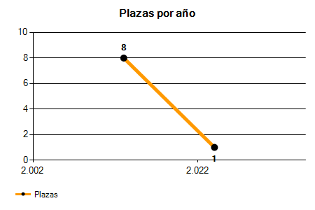 En los siguientes gráficos se puede ver la evolución del número de convocatorias y plazas convocadas para la profesión de Profesor de Educacion Fisica (Secundaria) en Madrid de los últimos años pudiéndose observar una caída del 100,00% desde el año 2013 hasta el 2025 en número de convocatorias y una caída del 100,00% en número de plazas convocadas.