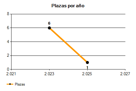 En los siguientes gráficos se puede ver la evolución del número de convocatorias y plazas convocadas para la profesión de Profesor de Música de Piano en Guipúzcoa de los últimos años pudiéndose observar una caída del 80,00% desde el año 2023 hasta el 2025 en número de convocatorias y una caída del 83,33% en número de plazas convocadas.