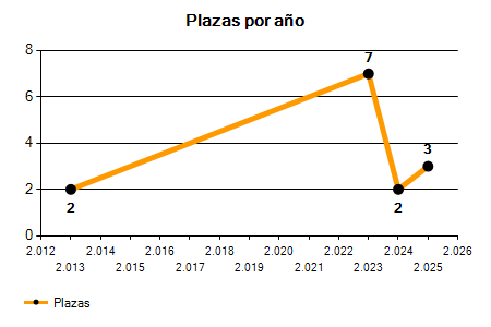 En los siguientes gráficos se puede ver la evolución del número de convocatorias y plazas convocadas para la profesión de Profesor en Tarragona de los últimos años pudiéndose observar una caída del 80,00% desde el año 2013 hasta el 2025 en número de convocatorias y un crecimiento del 50,00% en número de plazas convocadas.