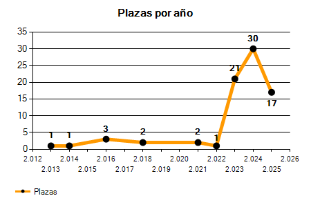 En los siguientes gráficos se puede ver la evolución del número de convocatorias y plazas convocadas para la profesión de Psicólogo en Alicante de los últimos años pudiéndose observar una caída del 100,00% desde el año 2013 hasta el 2026 en número de convocatorias y una caída del 100,00% en número de plazas convocadas.