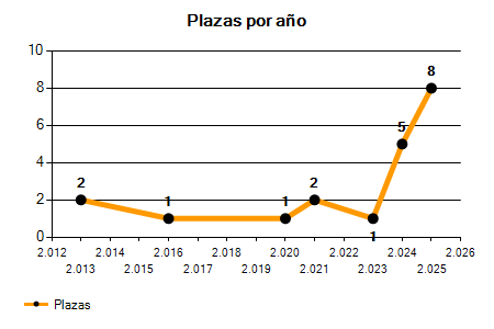 En los siguientes gráficos se puede ver la evolución del número de convocatorias y plazas convocadas para la profesión de Psicólogo en Asturias de los últimos años pudiéndose observar una caída del 100,00% desde el año 2013 hasta el 2026 en número de convocatorias y una caída del 100,00% en número de plazas convocadas.