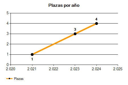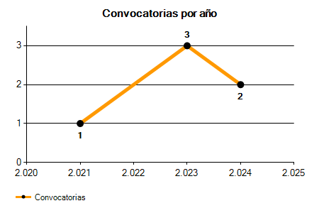 En los siguientes gráficos se puede ver la evolución del número de convocatorias y plazas convocadas para la profesión de Psicólogo en Córdoba de los últimos años pudiéndose observar una caída del 100,00% desde el año 2021 hasta el 2025 en número de convocatorias y una caída del 100,00% en número de plazas convocadas.