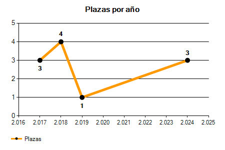 En los siguientes gráficos se puede ver la evolución del número de convocatorias y plazas convocadas para la profesión de Recaudador en Badajoz de los últimos años pudiéndose observar una caída del 100,00% desde el año 2017 hasta el 2025 en número de convocatorias y una caída del 100,00% en número de plazas convocadas.