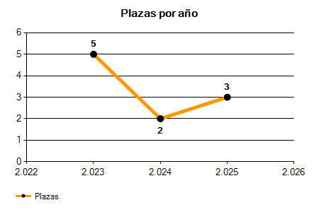 En los siguientes gráficos se puede ver la evolución del número de convocatorias y plazas convocadas para la profesión de Restaurador en Valencia de los últimos años pudiéndose observar una caída del 50,00% desde el año 2023 hasta el 2025 en número de convocatorias y una caída del 40,00% en número de plazas convocadas.