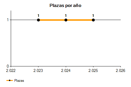 En los siguientes gráficos se puede ver la evolución del número de convocatorias y plazas convocadas para la profesión de Secretaria en Alicante de los últimos años pudiéndose observar un crecimiento y una caída del 0,00% desde el año 2023 hasta el 2025 en número de convocatorias y un crecimiento y una caída del 0,00% en número de plazas convocadas.