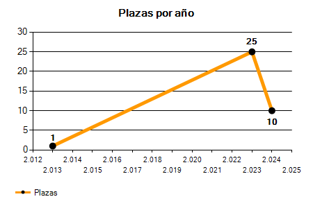 En los siguientes gráficos se puede ver la evolución del número de convocatorias y plazas convocadas para la profesión de Socorrista en Asturias de los últimos años pudiéndose observar una caída del 100,00% desde el año 2013 hasta el 2025 en número de convocatorias y una caída del 100,00% en número de plazas convocadas.