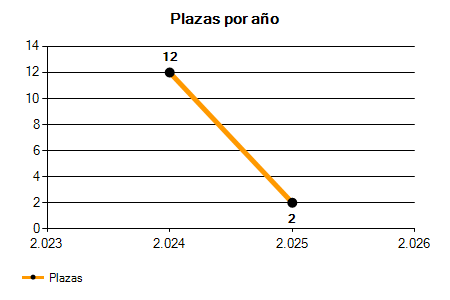 En los siguientes gráficos se puede ver la evolución del número de convocatorias y plazas convocadas para la profesión de Socorrista en Cáceres de los últimos años pudiéndose observar una caída del 33,33% desde el año 2024 hasta el 2025 en número de convocatorias y una caída del 83,33% en número de plazas convocadas.