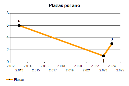 En los siguientes gráficos se puede ver la evolución del número de convocatorias y plazas convocadas para la profesión de Socorrista en Lleida de los últimos años pudiéndose observar una caída del 100,00% desde el año 2013 hasta el 2025 en número de convocatorias y una caída del 100,00% en número de plazas convocadas.