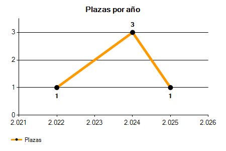 En los siguientes gráficos se puede ver la evolución del número de convocatorias y plazas convocadas para la profesión de Taquillero en Ciudad Real de los últimos años pudiéndose observar un crecimiento y una caída del 0,00% desde el año 2022 hasta el 2025 en número de convocatorias y un crecimiento y una caída del 0,00% en número de plazas convocadas.