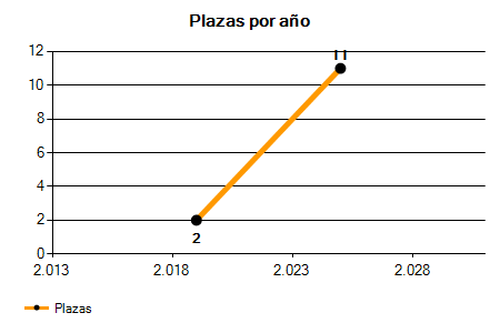 En los siguientes gráficos se puede ver la evolución del número de convocatorias y plazas convocadas para la profesión de Técnico/a Auxiliar de Instalaciones Deportivas en Alicante de los últimos años pudiéndose observar un crecimiento y una caída del 0,00% desde el año 2019 hasta el 2025 en número de convocatorias y un crecimiento del 450,00% en número de plazas convocadas.