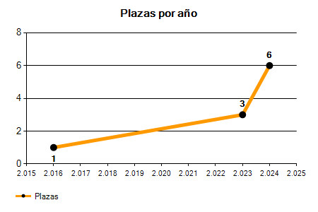 En los siguientes gráficos se puede ver la evolución del número de convocatorias y plazas convocadas para la profesión de Técnico administración especial en Asturias de los últimos años pudiéndose observar una caída del 100,00% desde el año 2016 hasta el 2025 en número de convocatorias y una caída del 100,00% en número de plazas convocadas.