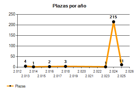 En los siguientes gráficos se puede ver la evolución del número de convocatorias y plazas convocadas para la profesión de Técnico administración especial en Barcelona de los últimos años pudiéndose observar un crecimiento del 150,00% desde el año 2013 hasta el 2025 en número de convocatorias y un crecimiento del 175,00% en número de plazas convocadas.