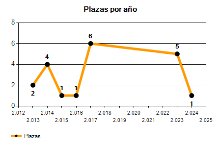 En los siguientes gráficos se puede ver la evolución del número de convocatorias y plazas convocadas para la profesión de Técnico administración especial en Cádiz de los últimos años pudiéndose observar una caída del 100,00% desde el año 2013 hasta el 2025 en número de convocatorias y una caída del 100,00% en número de plazas convocadas.