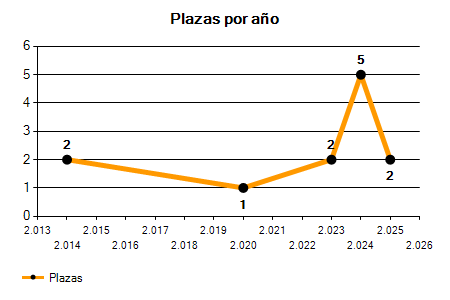 En los siguientes gráficos se puede ver la evolución del número de convocatorias y plazas convocadas para la profesión de Técnico administración especial en Girona de los últimos años pudiéndose observar un crecimiento y una caída del 0,00% desde el año 2014 hasta el 2025 en número de convocatorias y un crecimiento y una caída del 0,00% en número de plazas convocadas.